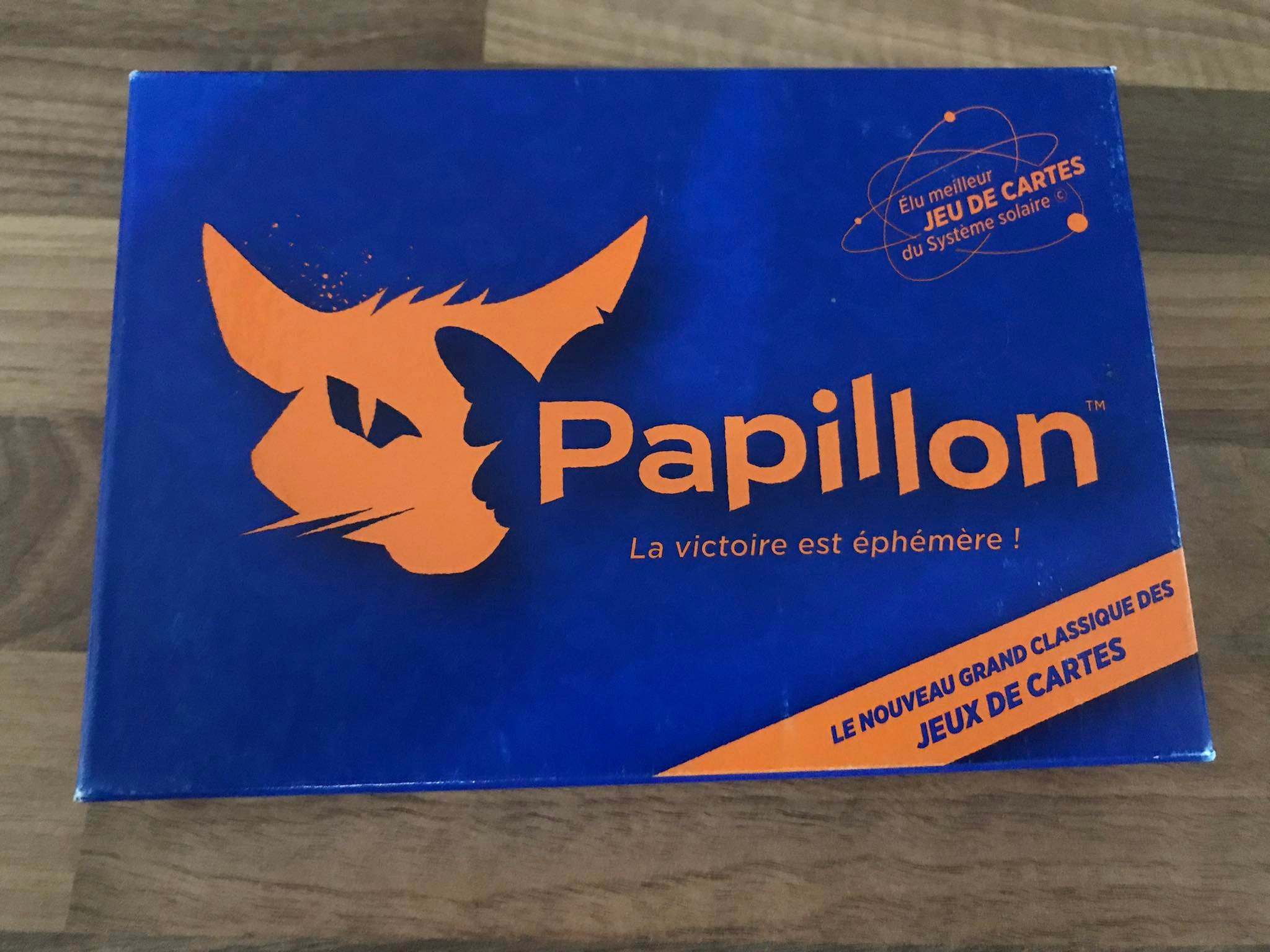 Dit is het oranje kaartspel in het doosje van het spel Papillon. Een spel waarbij je in tegenstelling tot het kaartspel met de blauwe kaarten, zo weinig mogelijk punten moet scoren